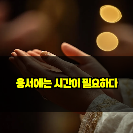 용서는 결코 단번에 이루어지는 일이 아닙니다. 시간이 걸리고, 때로는 마음이 뒤집히기도 하죠. 어떤 날은 용서할 수 있을 것 같다가도, 또 다른 날에는 그 상처가 더 깊어져 보일 수 있습니다. 중요한 것은 시간을 두고 천천히 나아가는 것입니다. 용서를 강요할 필요도 없고, 조급해할 필요도 없습니다. 용서의 과정은 그 자체로 치유의 시간이기도 합니다.