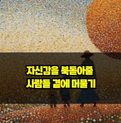 자신감을 회복하기 위해서는 긍정적인 사람들과 함께하는 것이 중요합니다. 주변 사람들은 우리의 생각과 감정에 큰 영향을 미칩니다. 자신을 지지해주고, 격려해주는 사람들과 함께 있을 때 우리는 스스로에 대한 믿음을 더 쉽게 회복할 수 있습니다. 반면, 부정적인 시각을 가진 사람들과 함께 있으면 그들의 부정적인 에너지가 우리의 자신감을 더 무너뜨릴 수 있습니다.