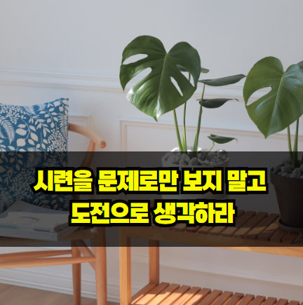 어려움에 직면했을 때 우리는 흔히 그것을 '문제'로 인식하고 회피하려는 경향이 있습니다. 그러나 문제를 '도전'으로 인식하면, 우리는 그것을 극복하기 위한 의지를 키우게 됩니다. 시련은 우리를 성장시키는 도전 과제입니다. 도전 과제로 받아들이면 오히려 그것을 해결하려는 동기가 강해지고, 주눅 들지 않고 맞설 수 있습니다.