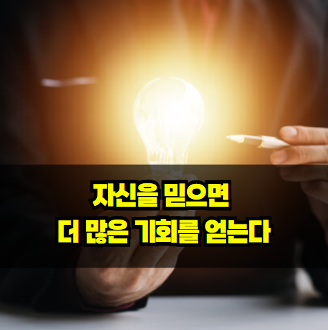 자신을 믿지 않으면 기회를 눈앞에 두고도 두려움 때문에 놓치게 됩니다. 스스로에 대한 확신이 없다면 도전조차 하지 않게 되고, 그로 인해 사람들도 나를 신뢰하지 않게 됩니다. 반면, 자신을 믿으면 새로운 기회를 잡을 용기가 생기고, 사람들은 그런 용기를 가진 사람을 신뢰하게 됩니다.