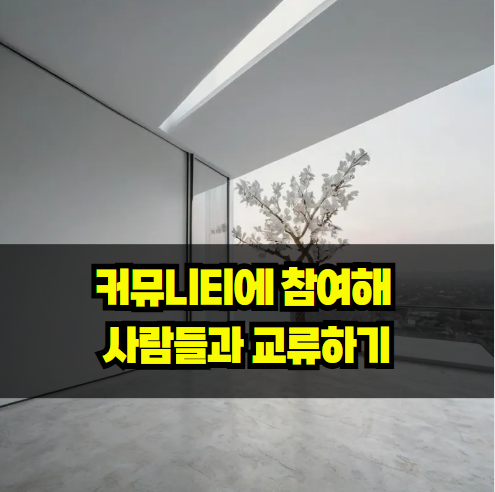 - "나와 비슷한 관심사를 가진 사람들과의 교류는 어떤가요?" 온라인 또는 오프라인에서 커뮤니티 활동에 참여해보세요.