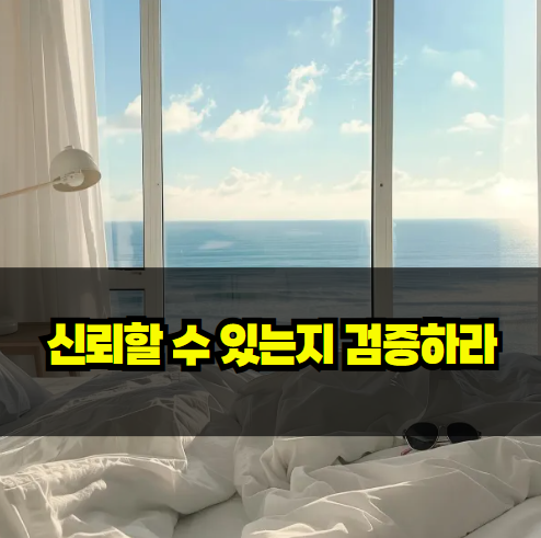 - "중요한 결정을 내리기 전에 충분한 시간을 두세요." 상대방의 신뢰성을 검증하는 데는 시간이 걸립니다. 빠른 판단보다는 신중한 검토가 필요합니다.