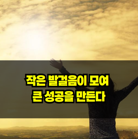 가장 큰 성공은 작은 발걸음 속에 숨어있습니다. 우리가 간과하기 쉬운 작은 노력이 모여 거대한 성과를 이루는 것입니다. 그러니 여러분도 오늘 작은 발걸음을 내딛어 보세요. 그것이 비록 작고 사소하게 느껴질지라도, 매일 꾸준히 내딛다 보면 어느새 꿈꾸던 목표에 도달해 있을 것입니다.