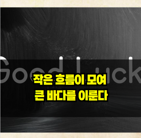 성공도 마찬가지입니다. 거대한 성취는 단번에 이루어지지 않습니다. 작은 행동과 선택들이 반복되고 쌓이면서 큰 결과로 이어지게 됩니다. 마치 작은 물방울들이 모여 흐름을 이루고, 그 흐름들이 바다로 이어지는 것처럼 말이죠.